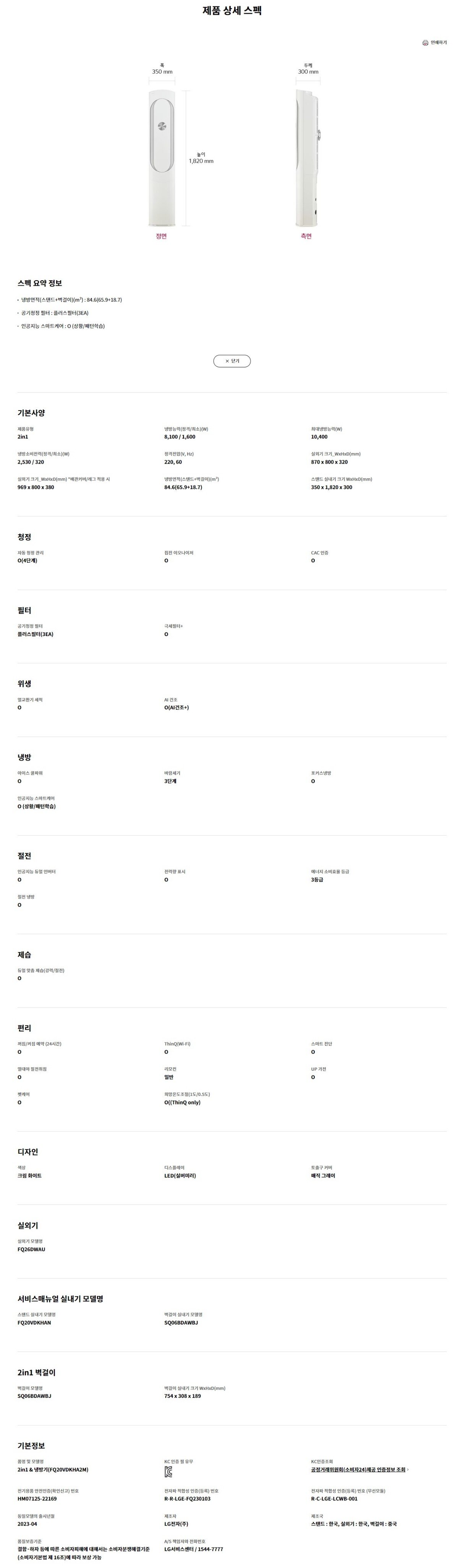 [LG전자/FQ20VDKHA2M] 23년형 멀티형에어컨 20+6형(매립환경) 칸/청정/전국.기본설치무료