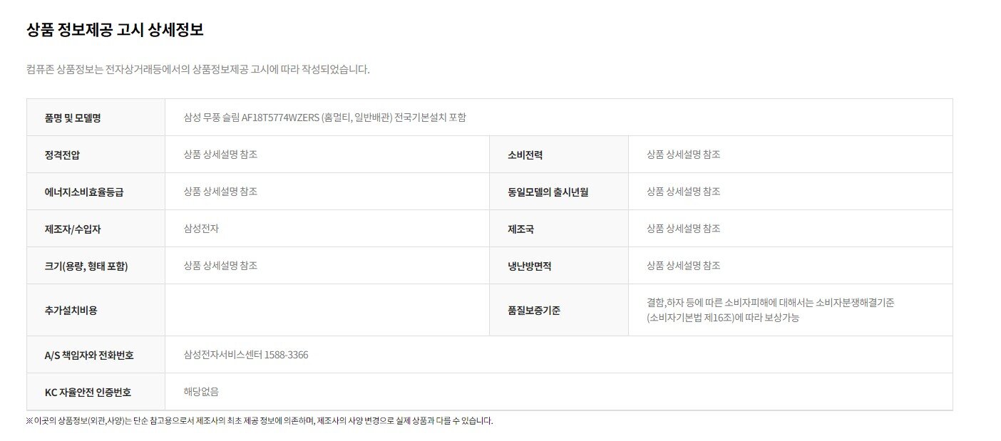 [삼성전자] 삼성 무풍 슬림 AF18T5774WZERS (홈멀티, 일반배관) 전국기본설치 포함