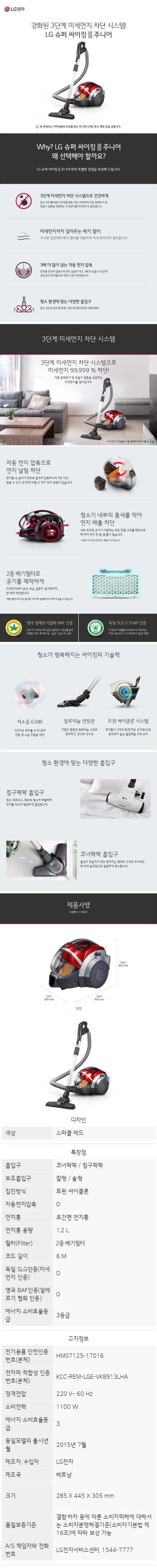 [LG전자] 유선진공청소기 슈퍼 싸이킹3 주니어 코너팍팍 K59RGY [스파클레드]