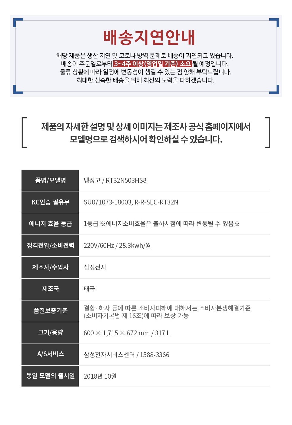 [삼성전자] [삼성전자] 삼성 일반형냉장고 RT32N513HS8 317L