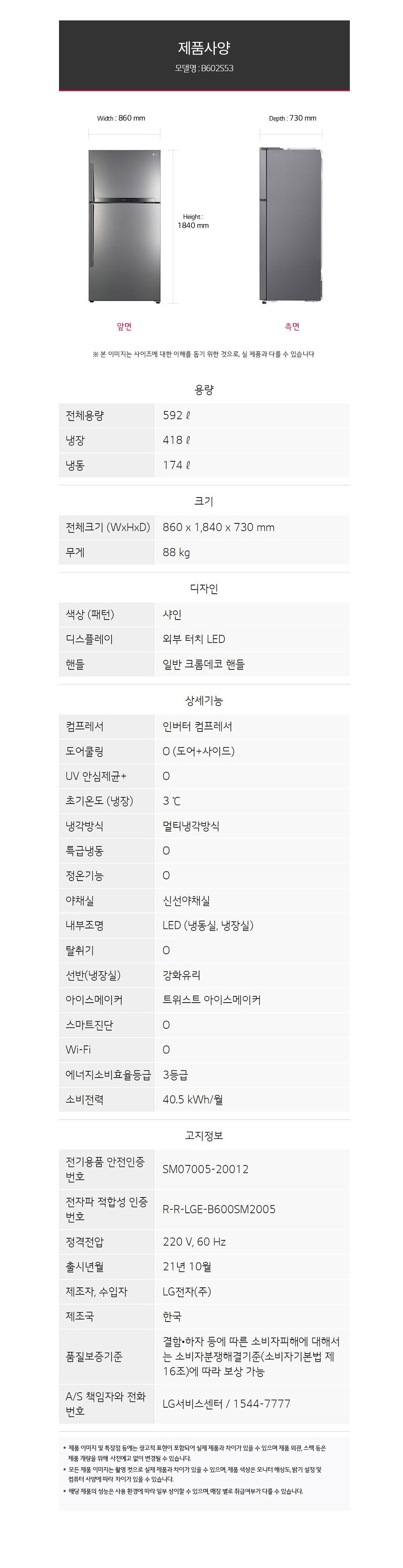 [LG전자] 일반냉장고 2도어 592L [샤인/B602S34]