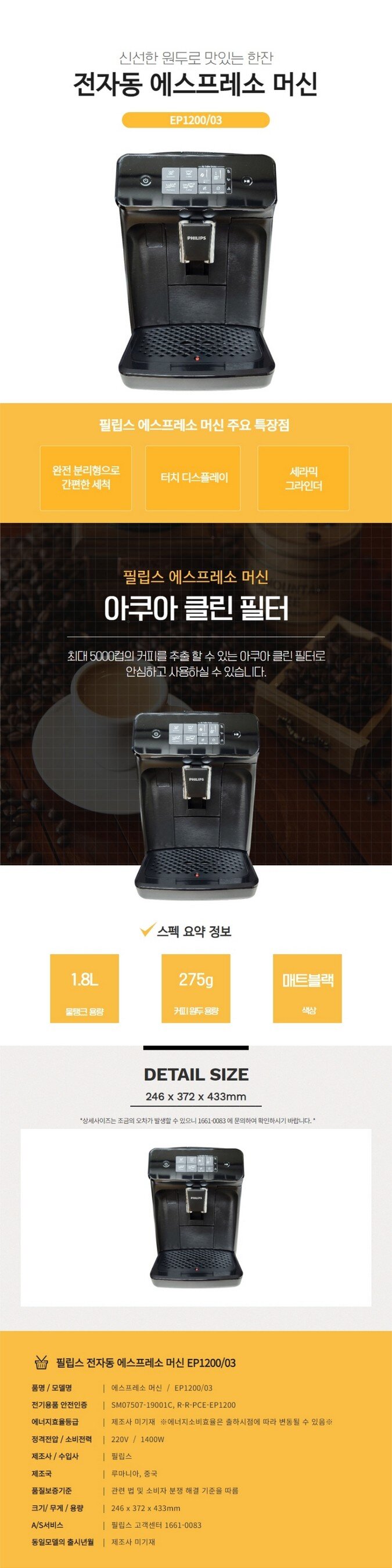 [필립스] 커피머신 EP1200/03