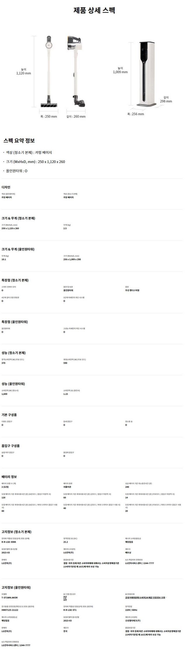 [LG전자] B2B 코드제로 A9 오브제컬렉션 올인원타워 물걸레 무선청소기 [카밍베이지/AU9460WD]