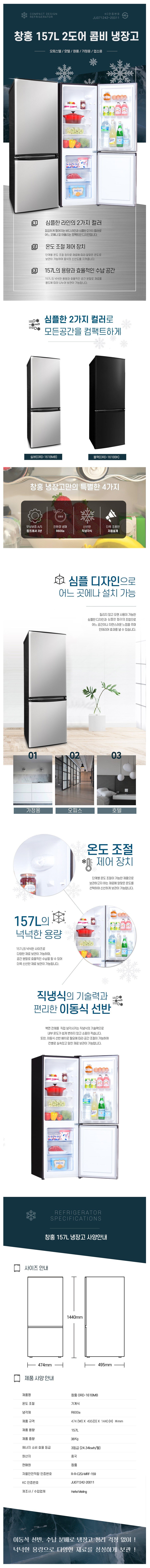 [오리온창홍] 창홍 157L 2도어 콤비 냉장고 메탈실버 ORD-150BMB