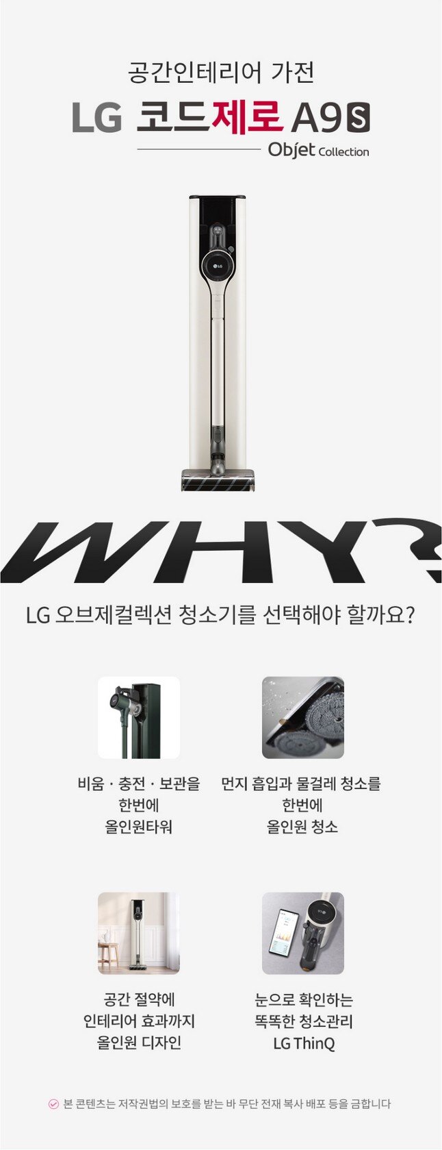 [LG전자] 코드제로 A9S 오브제컬렉션 올인원타워 물걸레 무선청소기 AO9571WKT [카밍베이지]