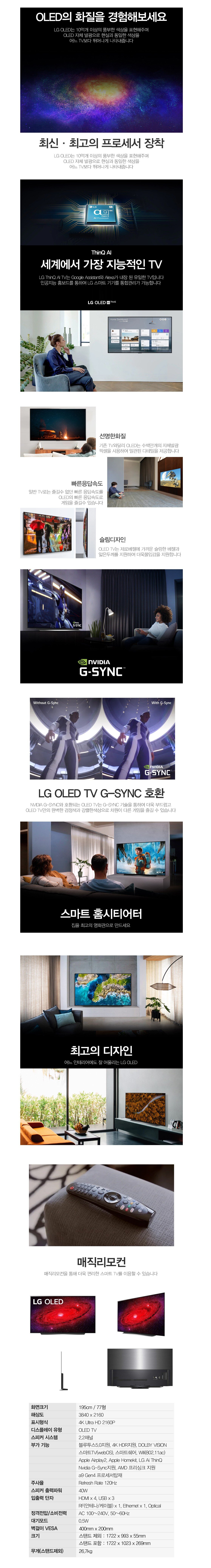 LG전자 77인치 올레드 UHD 4K 유튜브 넷플릭스 스마트 TV OLED77C1