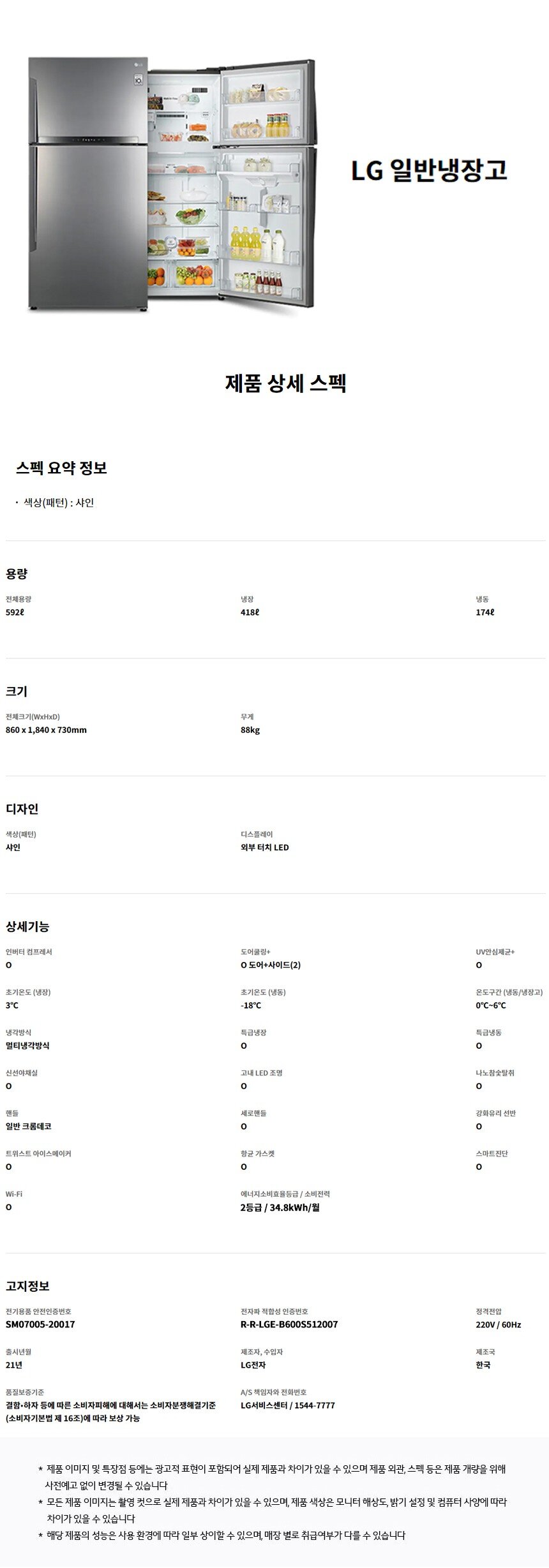 [LG전자] B2B 일반냉장고 2도어 592L [샤인/B602S34]