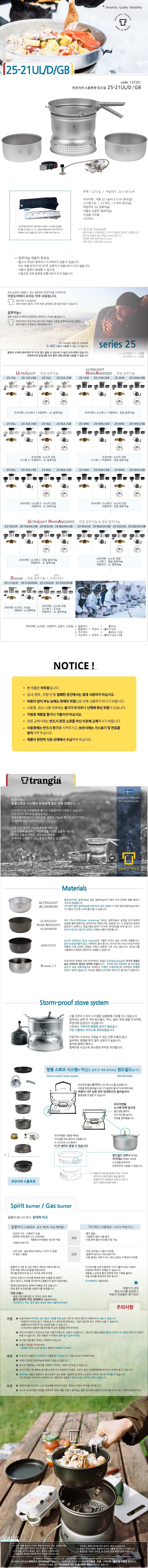 [트란지아] 캠핑 여행용 코펠 25-23UL/D/GB 듀오살 스톰쿡셋 (가스버너)