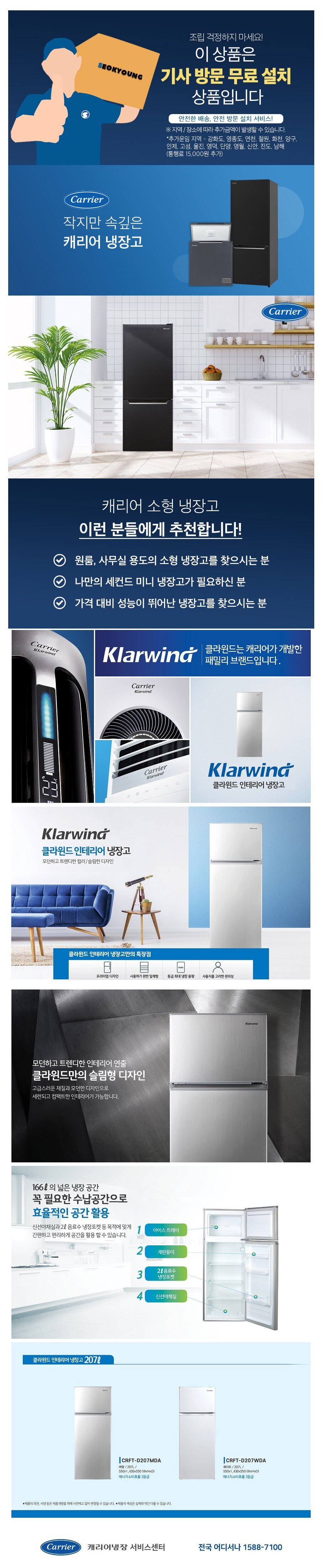 [캐리어] 클라윈드 화이트 2도어 냉장고 207리터 CRF-TD207WDA