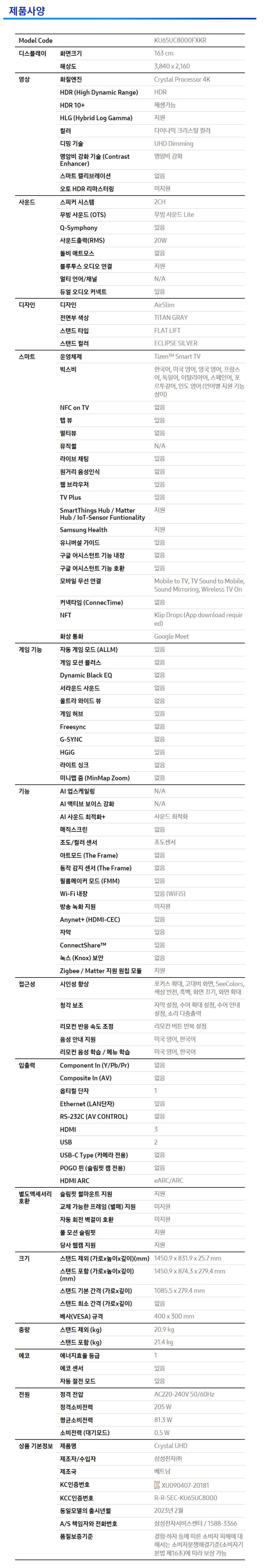 [삼성전자] 삼성 Crystal UHD TV 슬림핏 벽걸이형 KU65UC8000-W [삼성 공식인증점][전국무료 배송/설치/폐가전 회수]