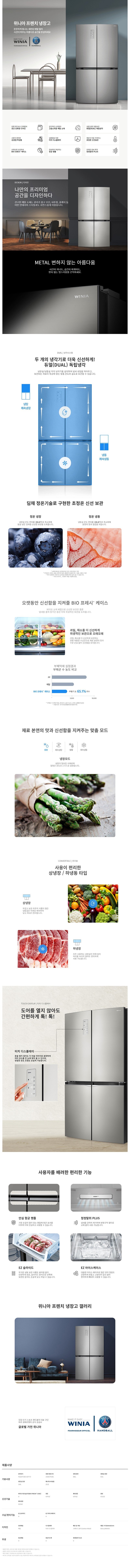 [위니아대우] 듀얼 독립냉각 메탈 청정 탈취 프렌치 냉장고 886L WWRW938EEMPS