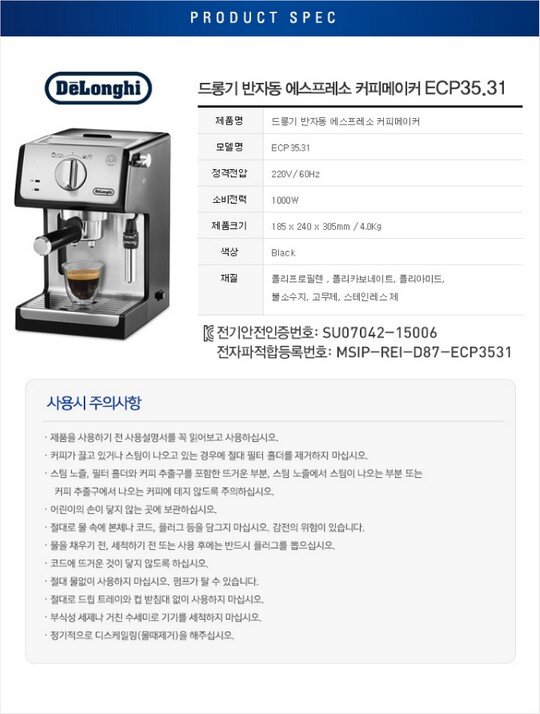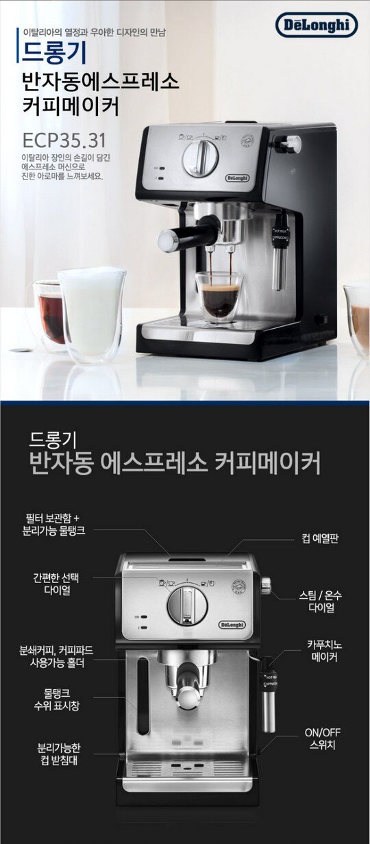 [드롱기] 반자동 에스프레소머신 ECP35.31
