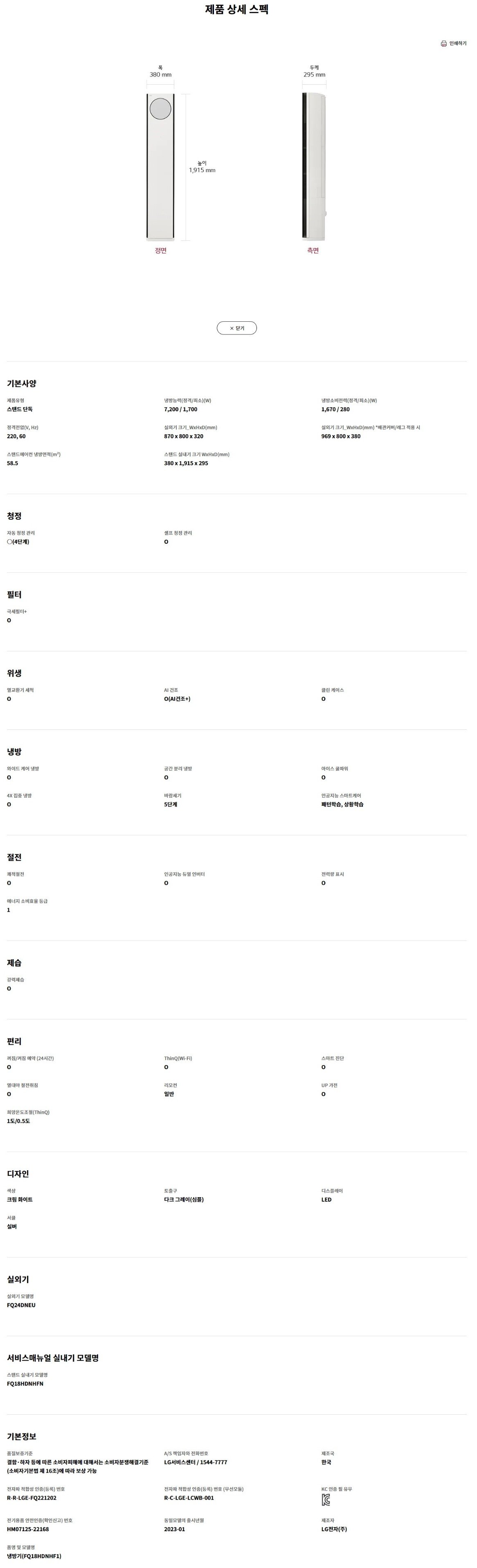 [LG전자/FQ18HDNHF1] 스탠드에어컨 18형(일반배관) 23년형 타워히트 크림화이트/전국.기본설치무료
