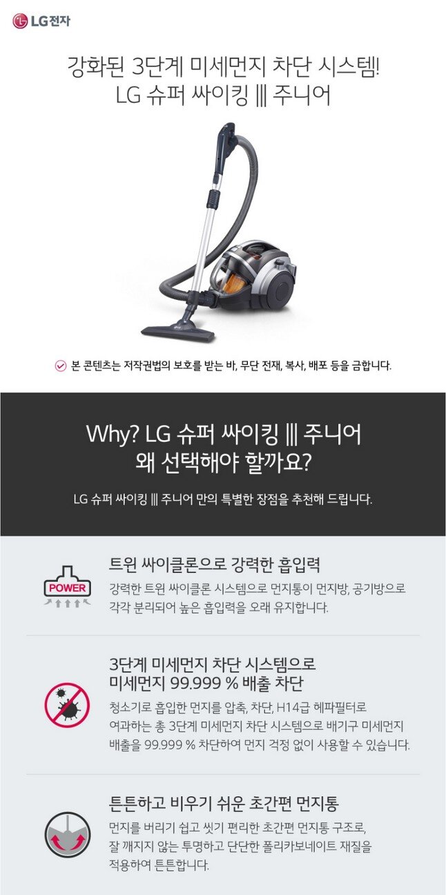 [LG전자] 유선진공청소기 슈퍼 싸이킹3 주니어 K59SG [샤이니실버]