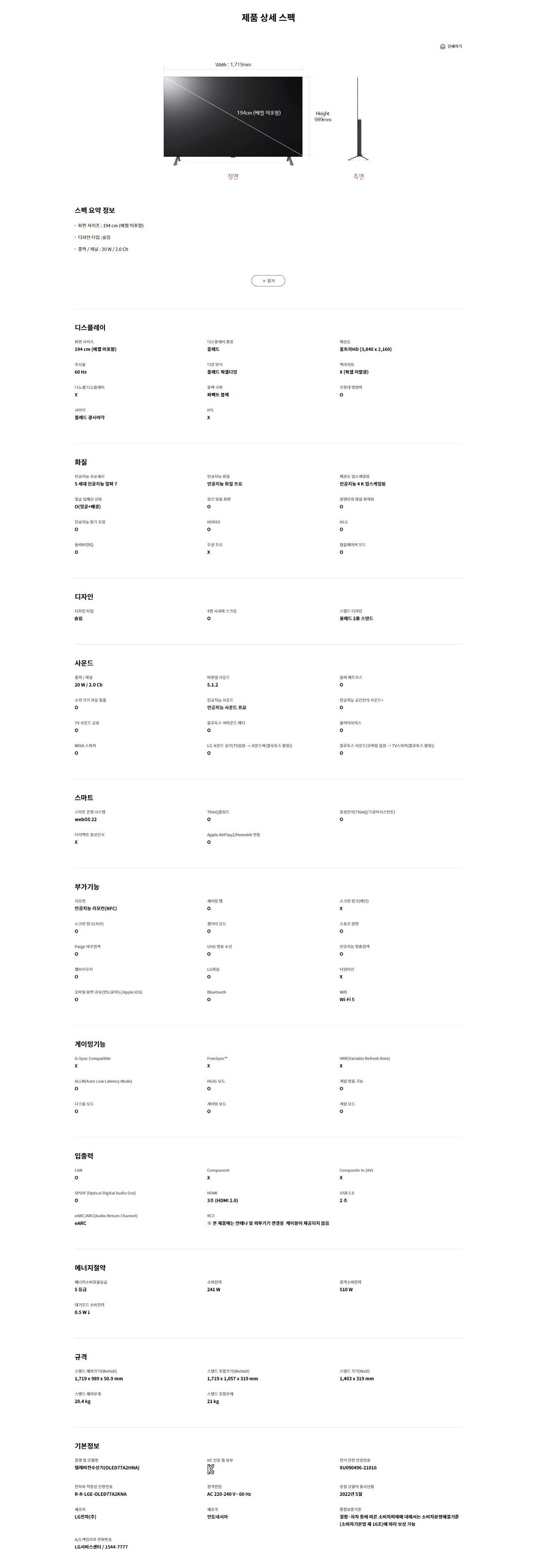 [LG전자] 194cm(77인치) OLED(올레드) TV UHD(4K) OLED77A2HNA
