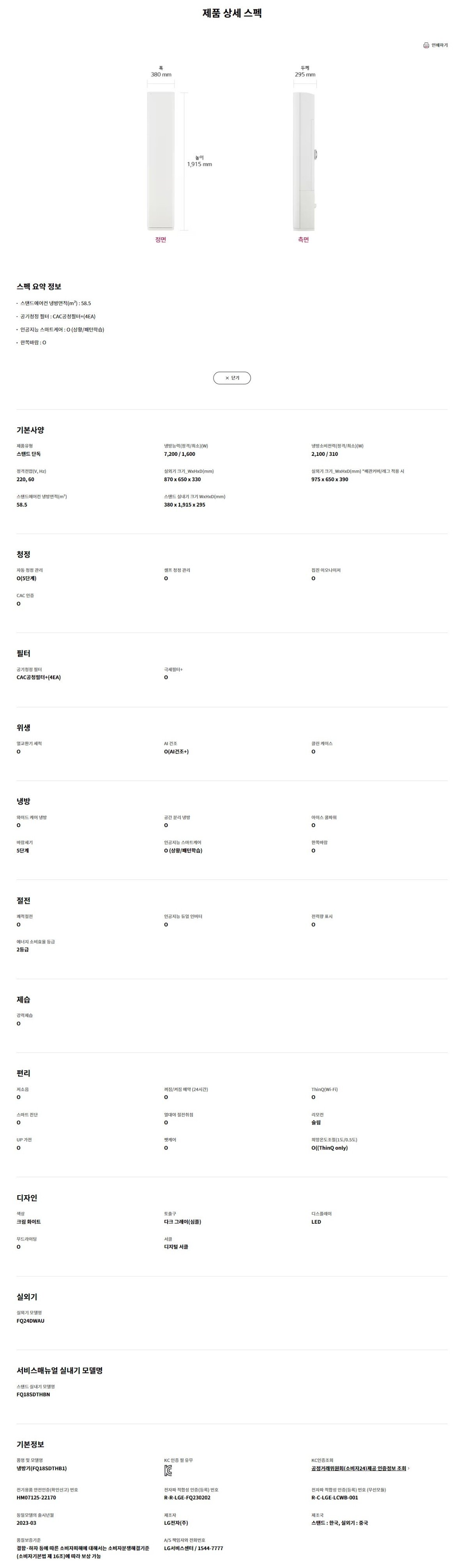 [LG전자/FQ18SDTHB1] 스탠드에어컨 18형(일반배관) 23년형 타워스페셜2 크림화이트/전국.기본설치무료