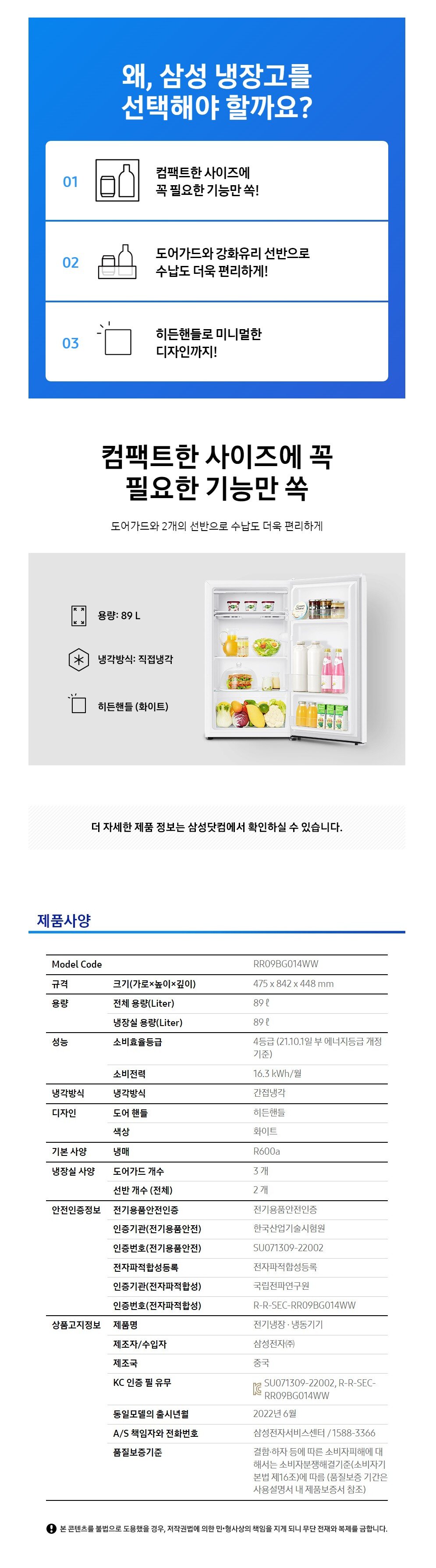[삼성전자] 삼성 냉장고 89L RR09BG014WW