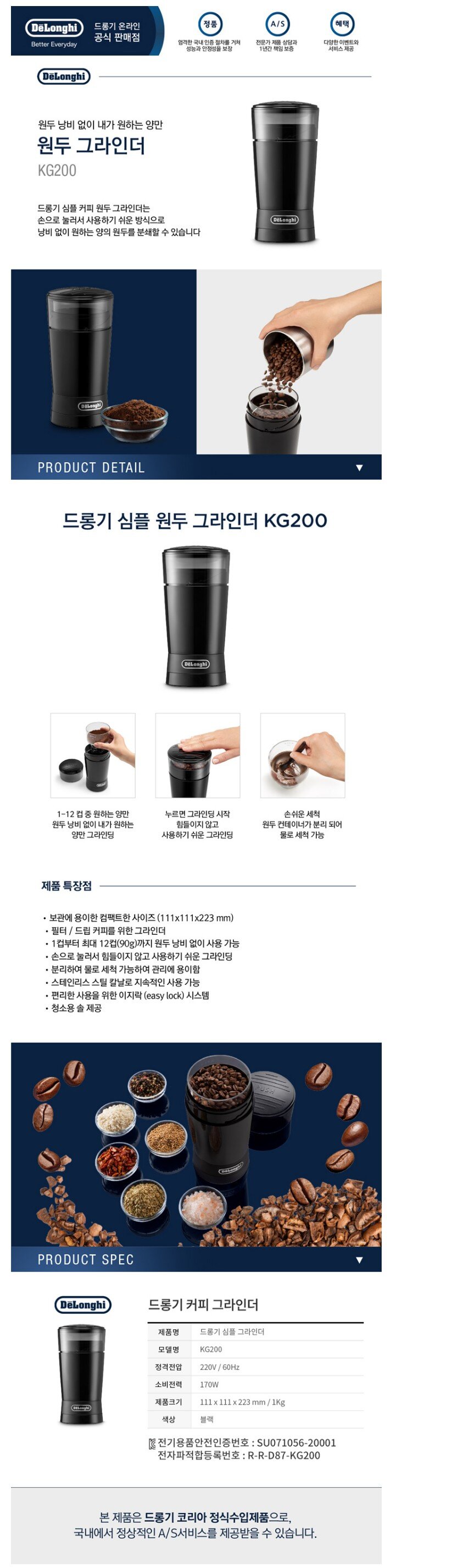 [드롱기] 심플 커피 그라인더 KG200