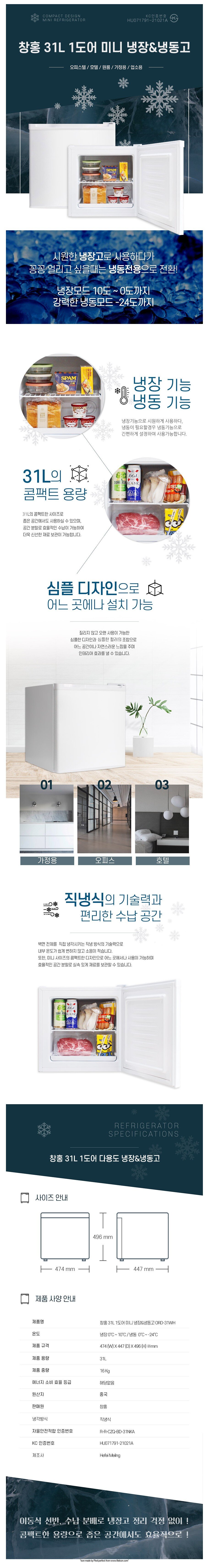 [오리온창홍] 창홍 31L 1도어 미니 냉장/냉동고 화이트 ORD-31WH