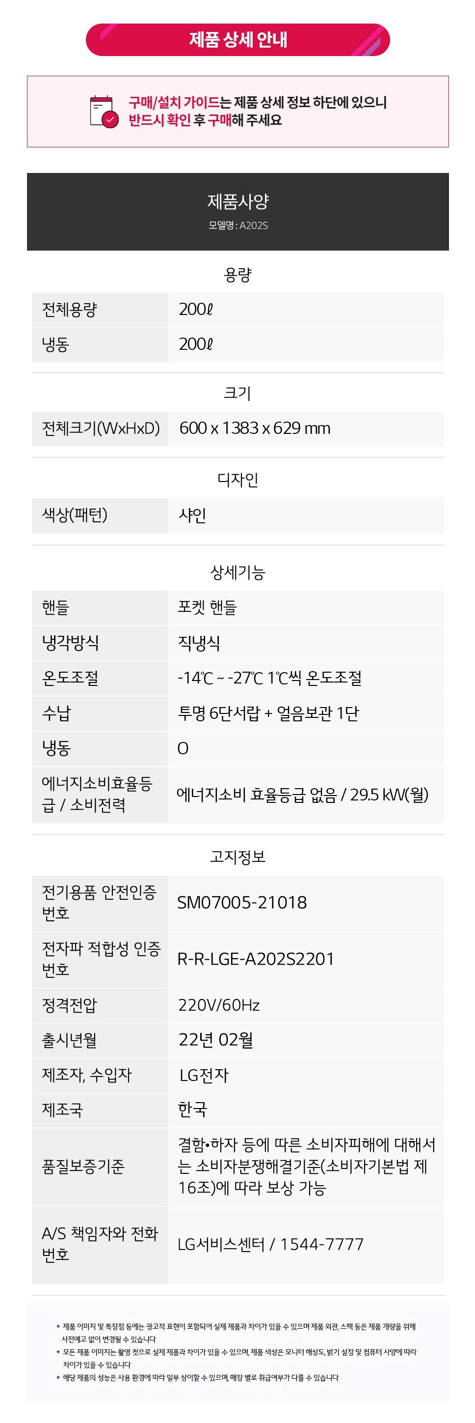 [LG전자] 일반냉동고 1도어 200L [샤인/A202S]